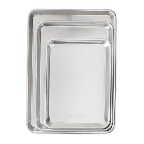 If you're looking for baking sheets that combine durability and performance, the Nordic Ware Naturals 3 Piece Set is an excellent choice. Made of pure aluminum, these pans provide superior heat conductivity which helps achieve evenly browned baked goods every time. The encapsulated galvanized steel rims prevent warping, ensuring the pans maintain their shape through countless uses. This set includes a Quarter Sheet, Jelly Roll, and Half Sheet pan, catering to all your baking needs from cookies to hearty sheet pan meals. Proudly made in the USA, these pans are designed to last a lifetime, making them a valuable addition to any kitchen.