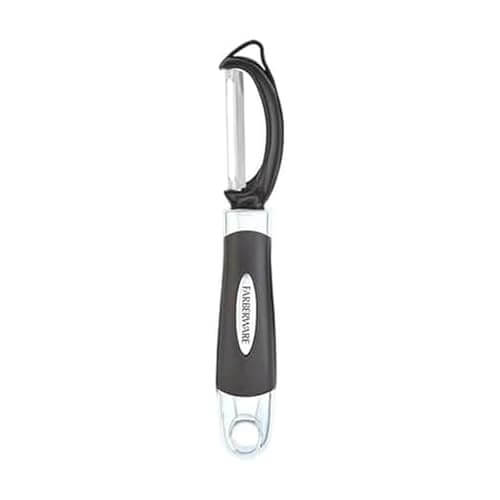 The Farberware Euro Peeler is a must-have in any kitchen, making peeling fruits and vegetables a breeze. With its razor-sharp, stainless-steel blade, it glides effortlessly over both hard and soft-skinned produce, from apples to zucchinis. The ergonomic handle ensures comfort and maximum control while peeling, allowing you to tackle even the toughest skins. Plus, its dishwasher-safe feature guarantees quick cleanup after use. Don't let storage be an issue—this peeler comes with a convenient hang-hole for easy storage in closets or pantries. Whether you're peeling potatoes or shaving chocolate, this durable tool is versatile enough for all your culinary needs. Elevate your cooking game with the Farberware Euro Peeler!