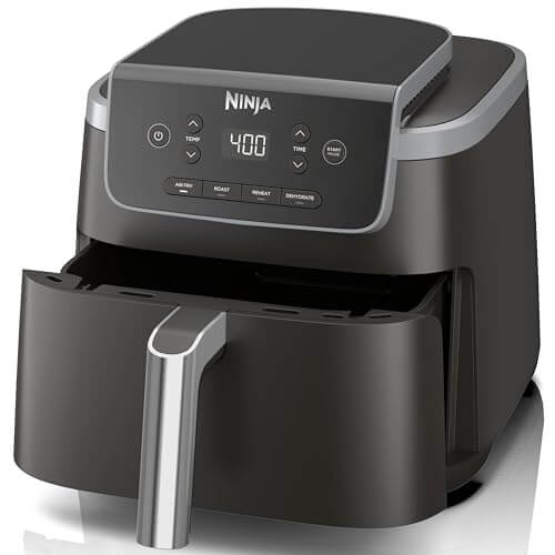 Discover the Ninja 4 QT Air Fryer, your ultimate kitchen companion for guilt-free cooking! With its air frying technology, you can enjoy up to 75% less fat compared to traditional frying methods, perfect for health-conscious individuals. The wide temperature range of 105°F to 400°F allows for precise cooking, whether you’re gently dehydrating fruits or crisping up your favorite dishes. Its family-sized capacity features a ceramic-coated nonstick basket that holds up to 2 lbs of French fries. Plus, with 4 cooking programs – Air Fry, Roast, Reheat, and Dehydrate – you can create delicious, homemade snacks with ease. Includes 20 easy and healthy recipes, making it perfect for busy families!